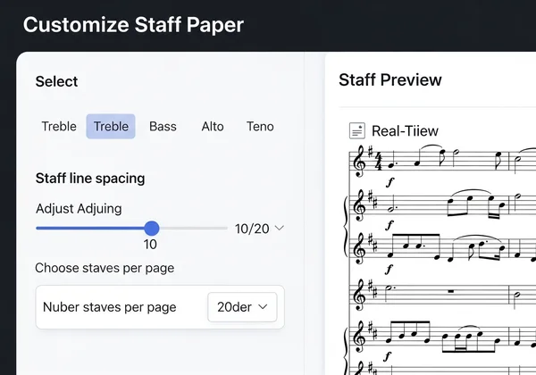 StaffPaper.org is an excellent resource for music teachers. It offers a completely free tool to create and download high-quality PDF staff paper. You can customize the instrument type, clefs, number of staves per page, and paper size (A4/Letter), making it perfect for creating tailored teaching materials.